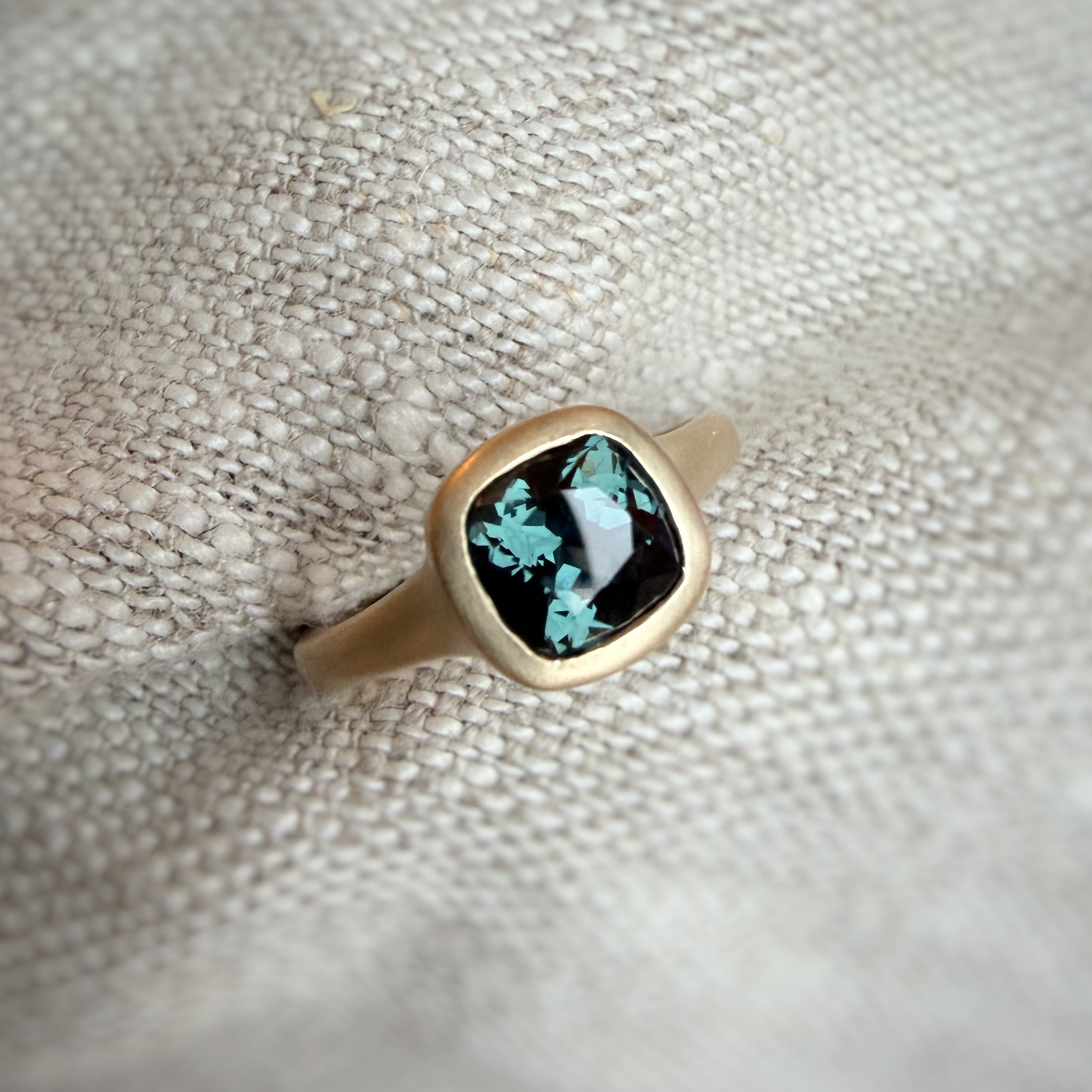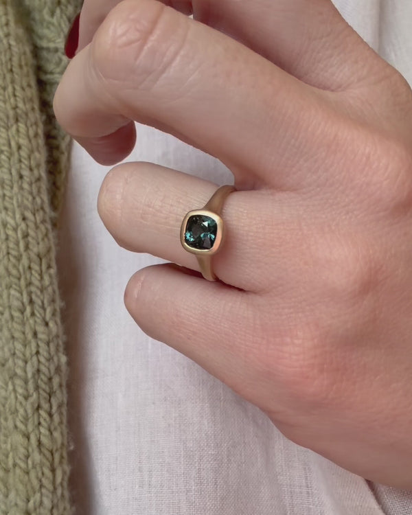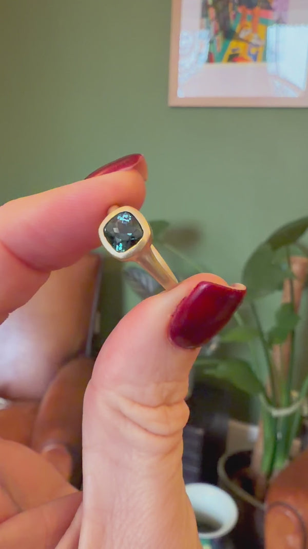 Featuring a 1.25 ct teal gray cushion cut spinel. A really tricky to find tone and saturation - a special stone!